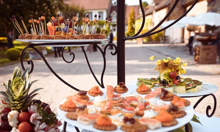 6 pcs froides, 3 pcs chaudes, 2 stands culinaires cocktails, 2 stand culinaires mini plat, 5 pcs dessert